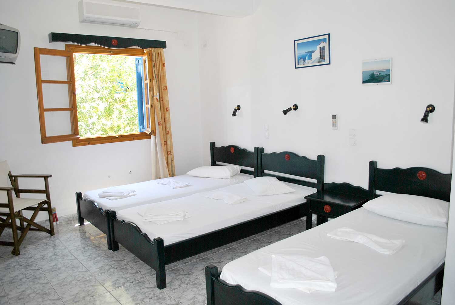 Το δωμάτιο 6 βρίσκεται στο ισόγειο, είναι άνετο και λειτουργικό και διαθέτει τρία μονά κρεβάτια, κουζινάκι και μπάνιο, ιδανικό για παρέες ή οικογένειες που επιθυμούν χαλαρή διαμονή κοντά στη θάλασσα.